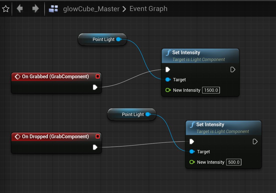 This interaction was built on the level blueprint rather than an individual one, to see what level triggers might look like. In this case, the trigger causes the bush to either grow or shrink, and briefly shows a “sparks” particle effect for some pizzaz.