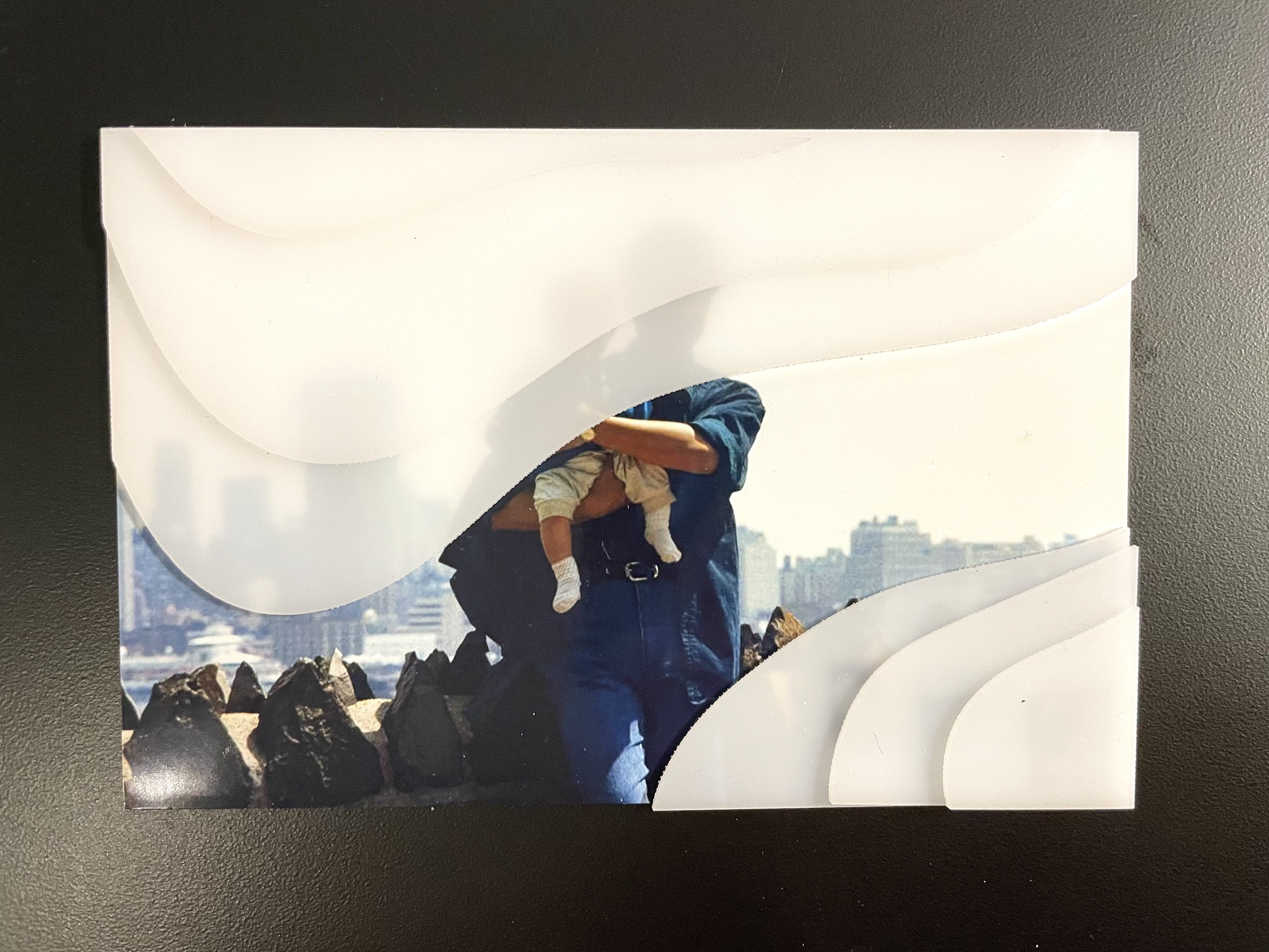 My first intervention more obscuring, this time with multiple layers. I was looking to represent the distance I felt from this image, and my own fogginess in these memories.